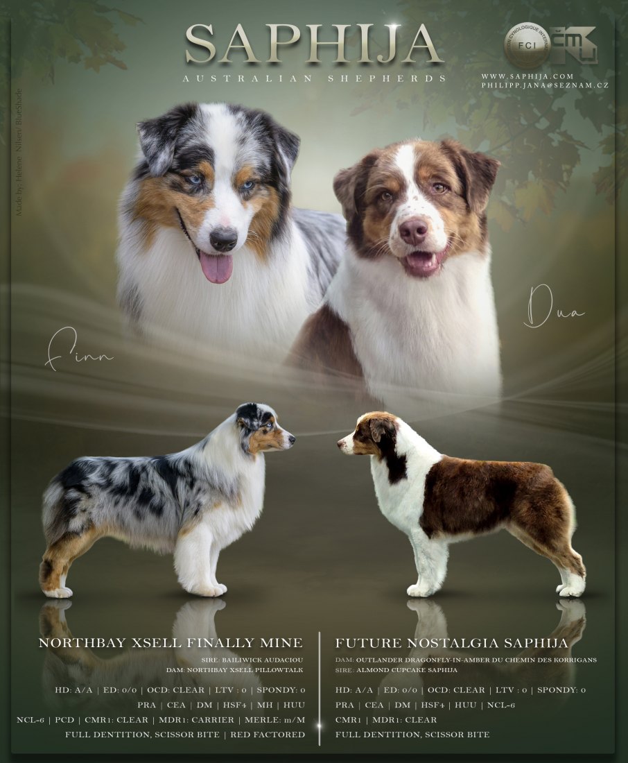 Aus dieser Verpaarung erwarten wir gesunde Welpen mit ausgeglichenem Charakter und schönem Exterieur. Die Welpen wachsen im Haus auf, sind an Kinder und den normalen Alltag gewöhnt. In der sechsten Lebenswoche werden sie von einem Augenspezialisten untersucht, geimpft, gechippt und altersgerecht entwurmt.
